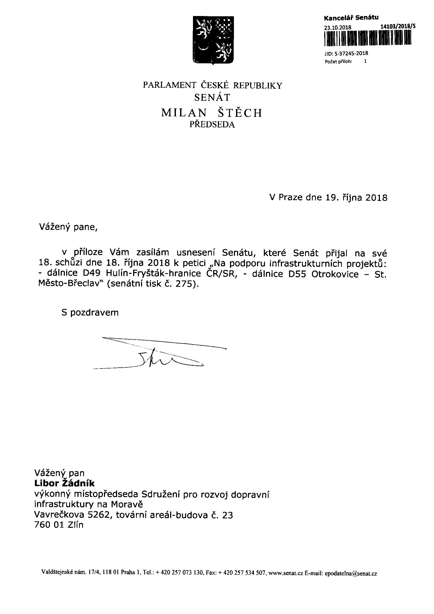 - dálnice D55 Otrokovice – St. Město-Břeclav“ (senátní tisk č. 275)