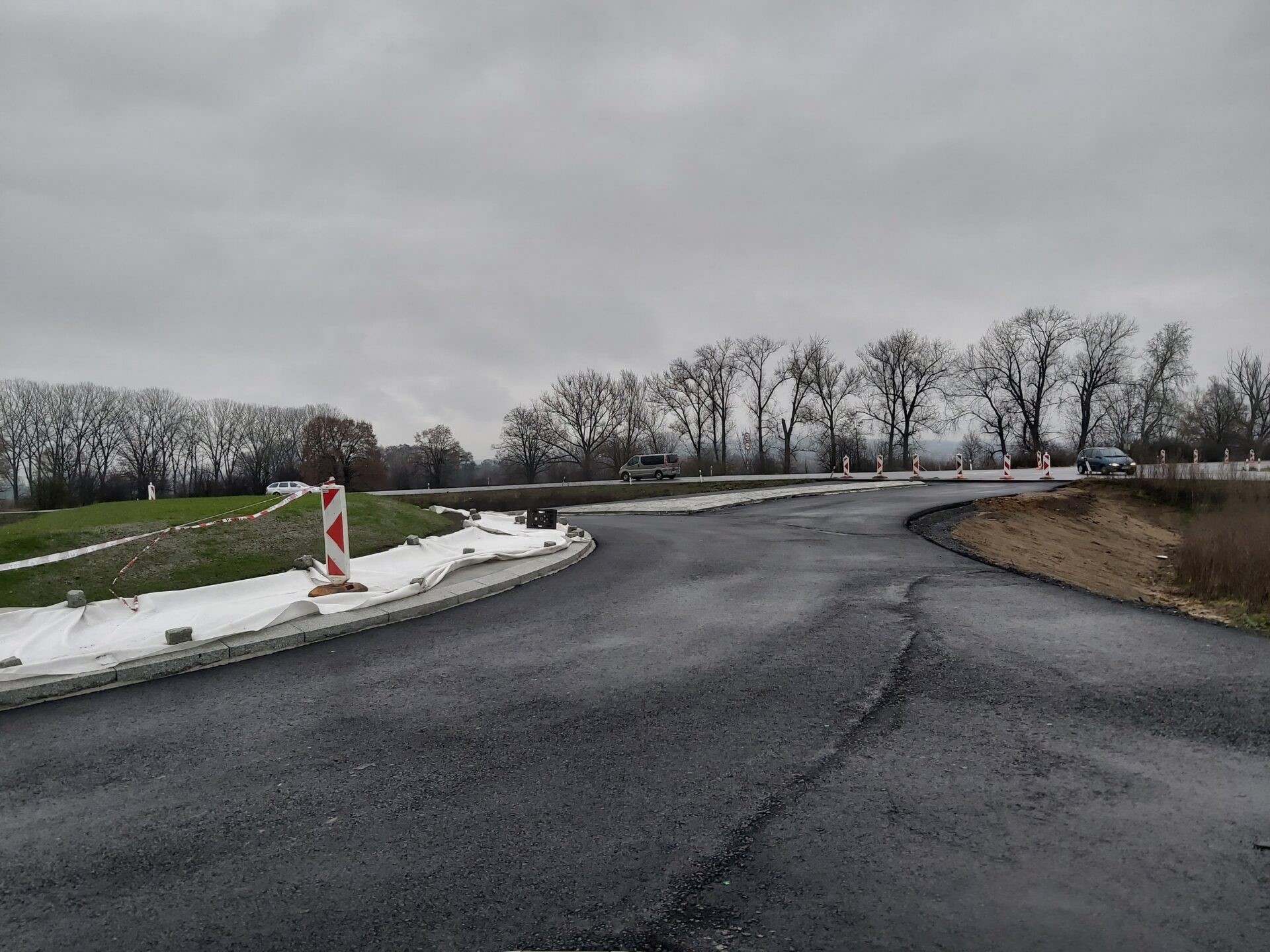 Řidiči, kteří jezdí po silnici I/55 mezi Starým Městem a Huštěnovicemi, mohou v těchto dnech také sledovat dokončovací práce na okružní křižovatce, jejíž zprovoznění plánujeme letos na konci I. kvartálu.