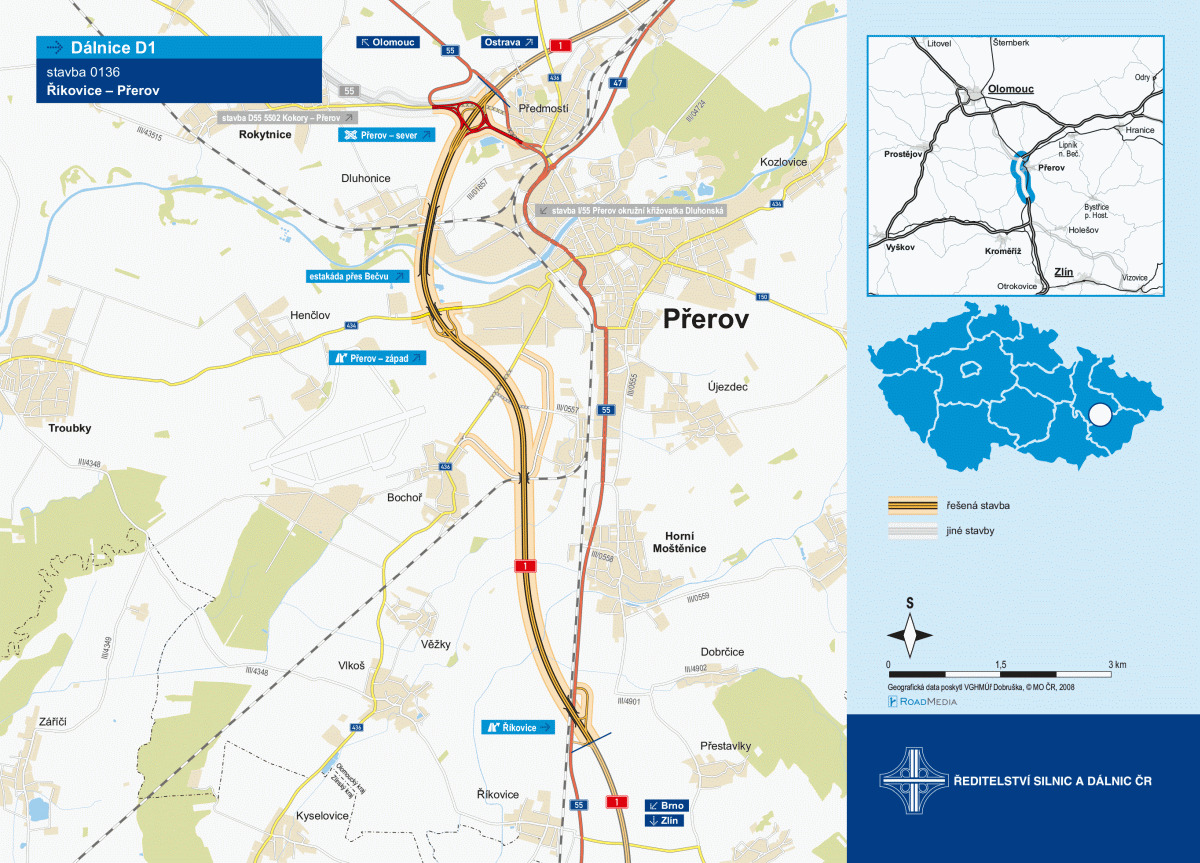 Stavba D1 začala v prosinci 2022, běží podle schváleného harmonogramu. Kompletně hotová má být v roce 2026, ŘSD ještě aktuálně řeší možnosti urychlení výstavby.