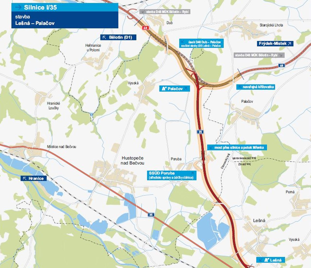 V létě 2026 plánuje ŘSD zprovoznit Palačovskou spojku, důležité spojení Valašska a D1. Tím se zacelí i mezera v D48. Ve stejném termínu by mělo začít fungovat i Středisko správy a údržby dálnic Poruba v Hustopečích nad Bečvou na Přerovsku.