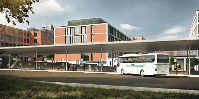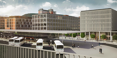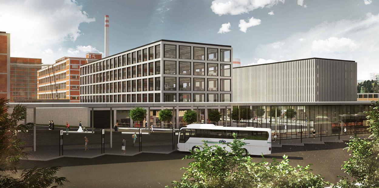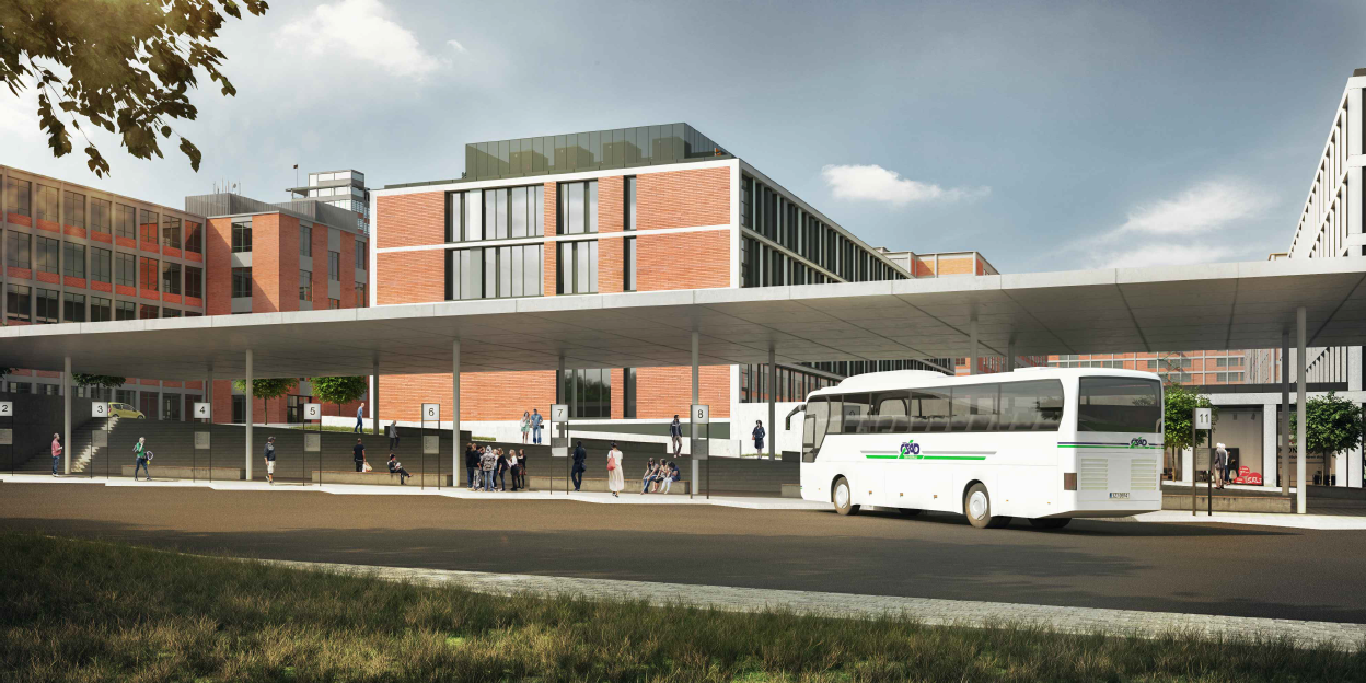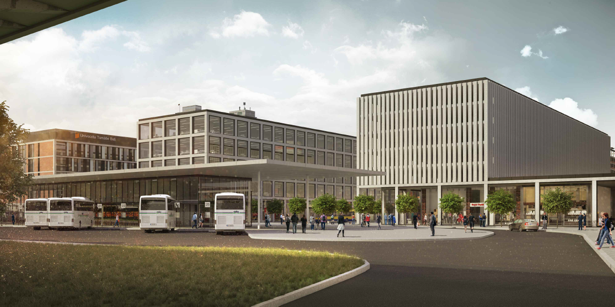 Urbanistická studie počítá s umístěním dopravního terminálu v prostoru stávajícího autobusového nádraží, kde vniknou hned tři nové objekty výpravní budova vlakového nádraží, budova autobusového nádraží a komerční objekt. Výpravní budova vlakového nádraží je nově umístěna v linii s novou budovou UTB a nabídne i dostatečnou parkovací kapacitu pro odstavení vozů a následné využití služeb vlakového nebo autobusového dopravce. Plocha autobusového nádraží se oproti stávajícímu stavu zmenší a na ní vznikne výpravní budova se zázemím pro cestující. Uvolněný prostor bude využit pro stavbu nového komerčního objektu, který bude s výpravní budovou spojen podchodem.